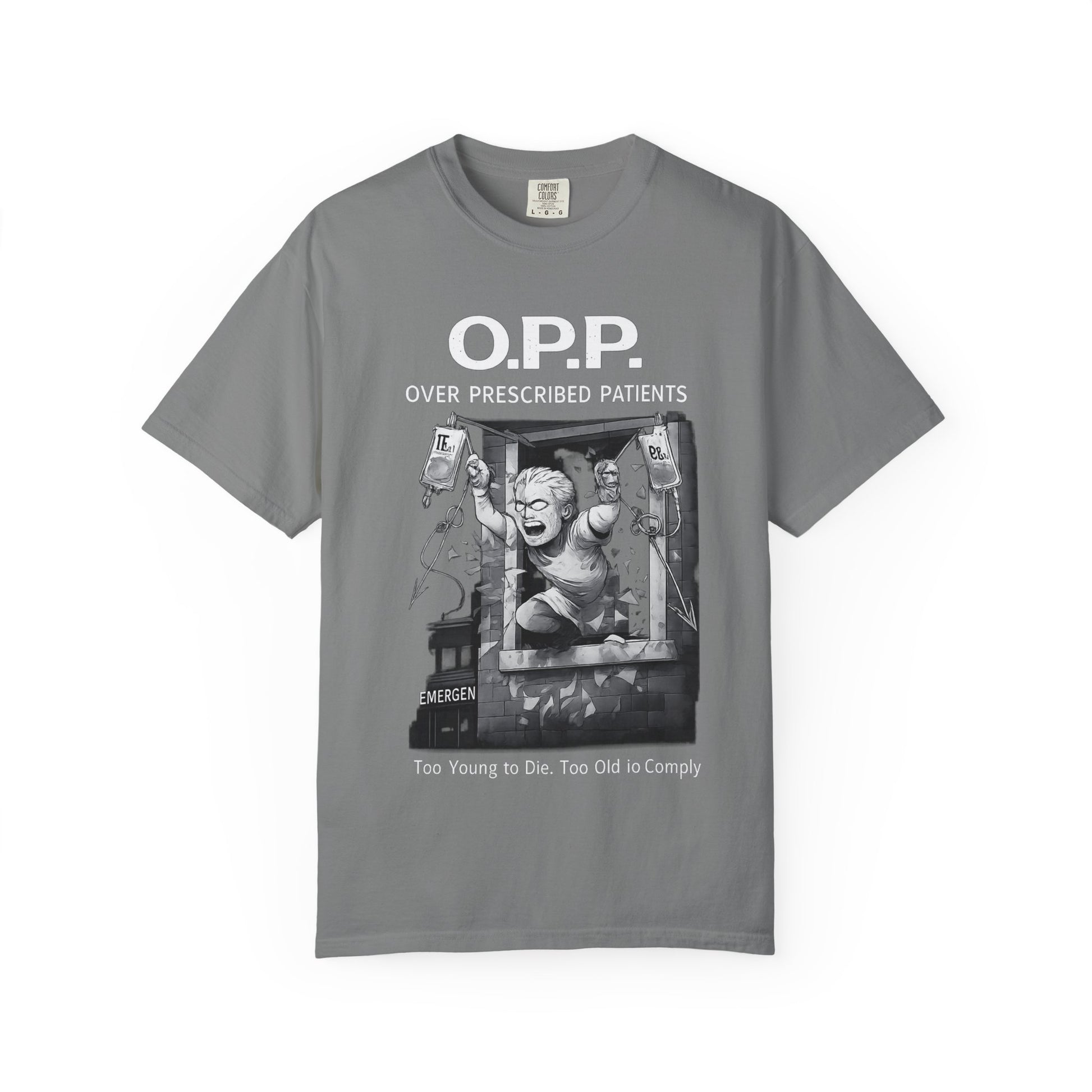 The OPP Over Prescribed Patients tee is for those who refuse to accept the prescription-dependent path. Choose peptides, choose sovereignty, choose life on your terms.