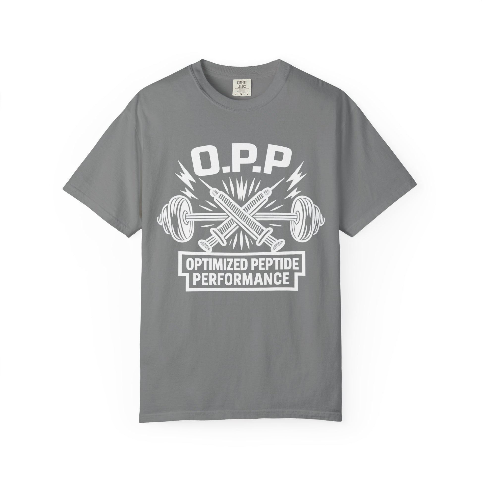 The OPP Gym tee is designed for those who bring their peptide protocol to the gym. Optimized Peptide Performance for serious lifters and fitness enthusiasts.