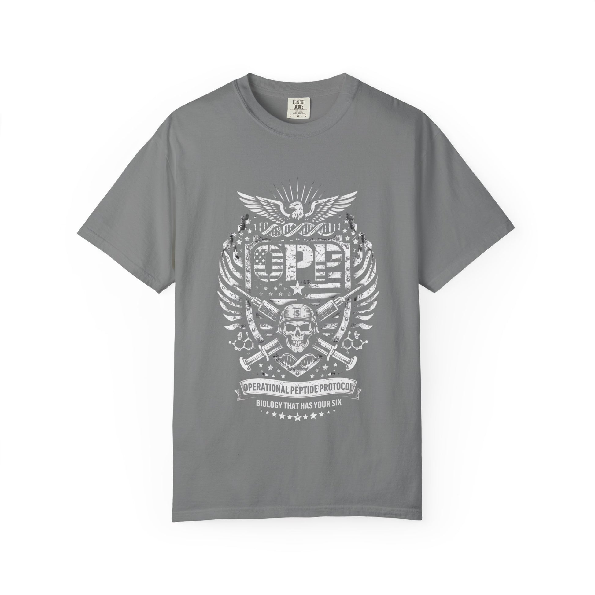 The OPP Military Operational Peptide Protocol tee is designed for military personnel who understand that biology has your six. Optimized performance for those who serve.