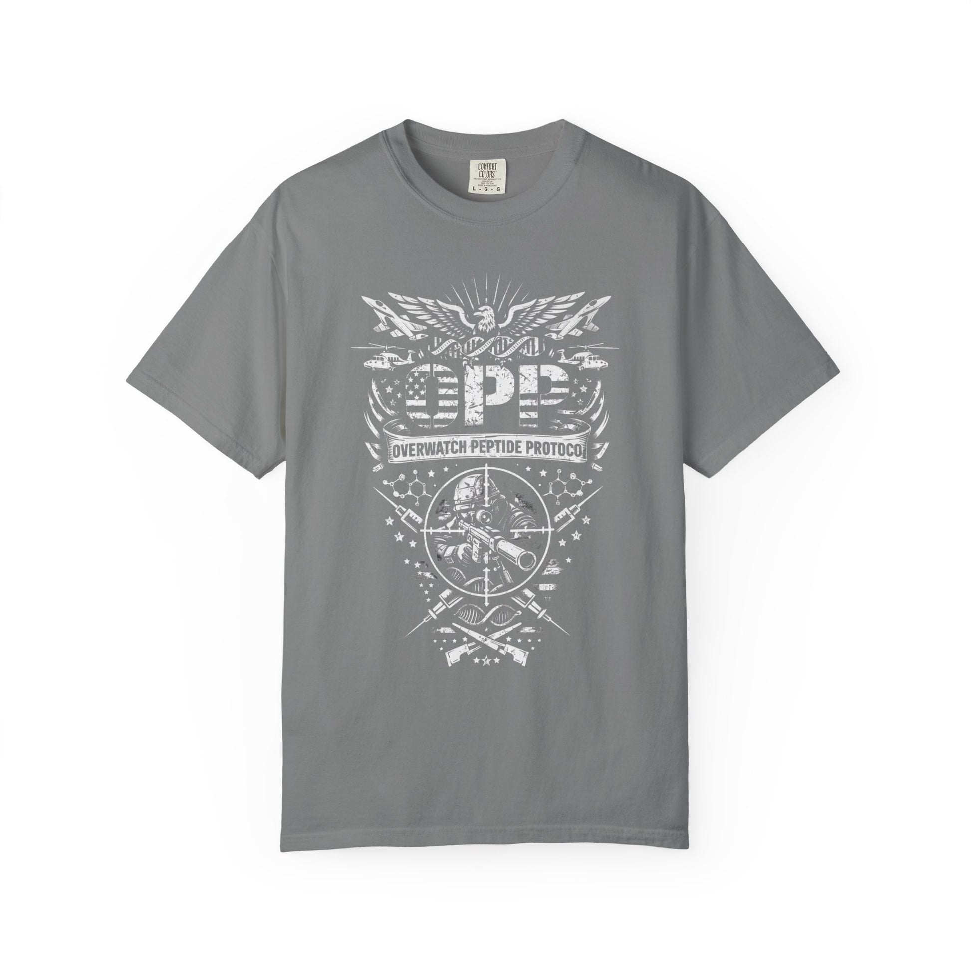 The OPP Military Overwatch tee is designed for military personnel who understand that staying sharp requires optimization. Overwatch Peptide Protocol for those who watch your six.