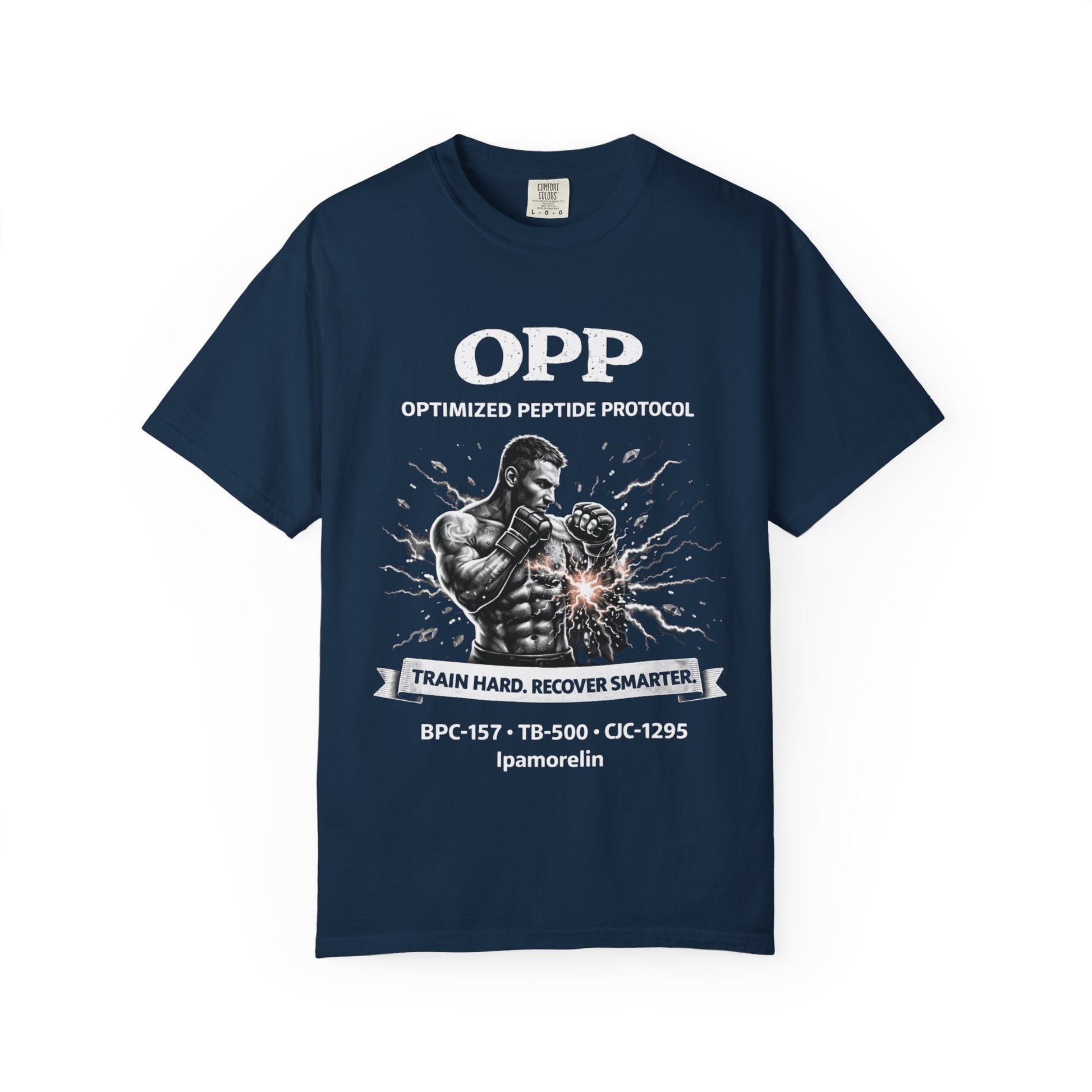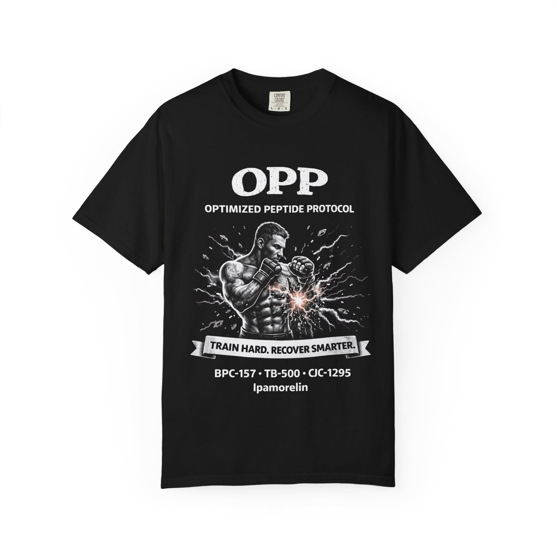 The OPP MMA tee is designed for fighters who understand that recovery is the key to performance. Optimized Peptide Protocol for those who train hard and recover smarter.